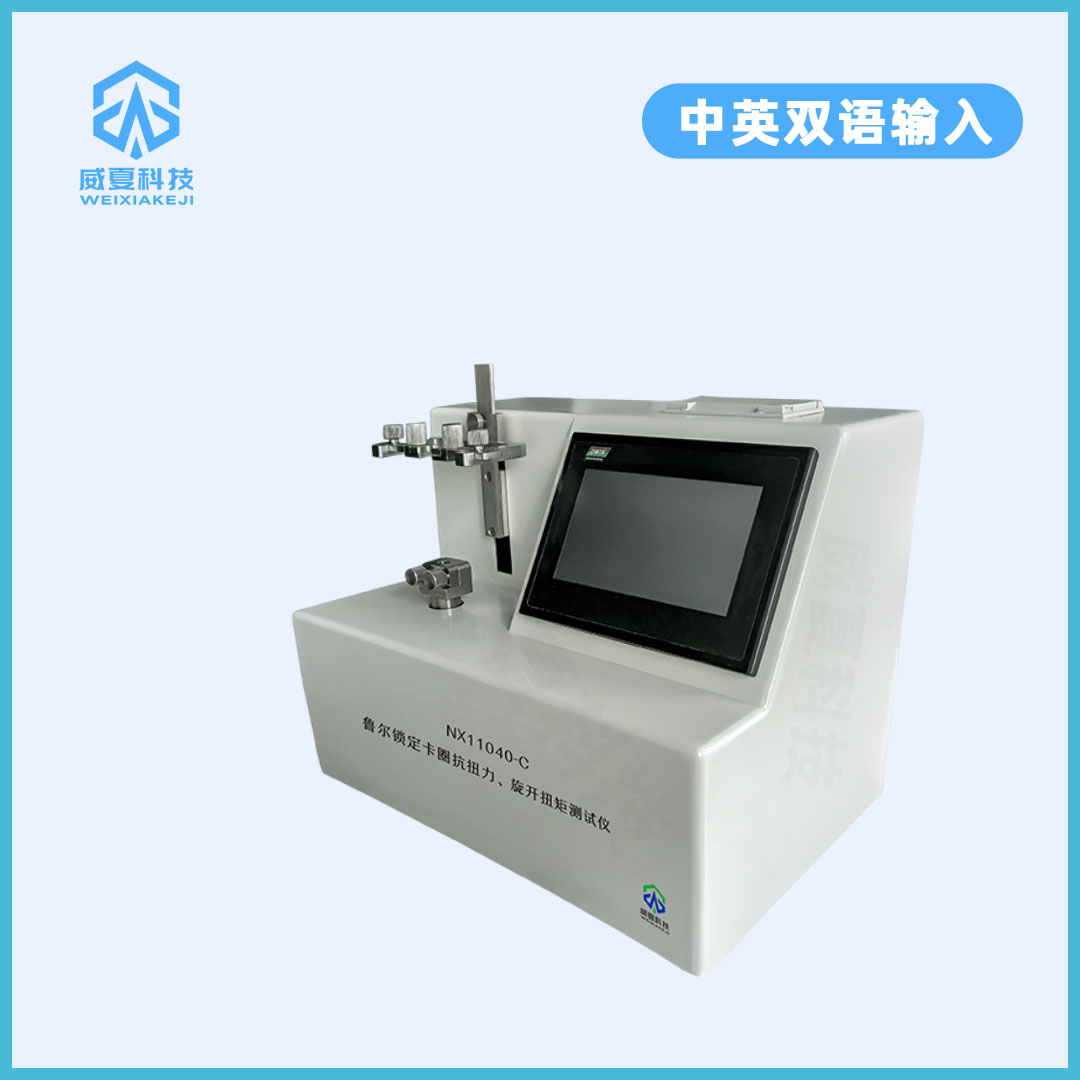 NX11040-C魯爾鎖定卡圈抗扭力旋開扭矩測試儀主要用于測定魯爾接頭的物理特性,是鑒定魯爾鎖定卡圈抗扭力、旋開扭矩的重要手段之一。